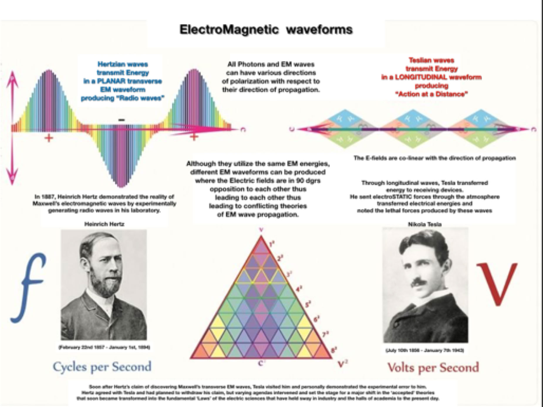Back in the 1900s, Nicola Tesla discovered an electromagnetic longitudinal wave. It can carry out lossless transmission of energy over vast distances, pass through solid metal objects with no loss of power, and transport energy without the need of wires. Tesla did not explain how it worked in this patent, nor did he give it a name. In the 21st century, it has now been called scalar waves. Scalar waves are instantaneous longitudinal waves that encompass the field. They do not propagate along an axis or have a direction, unlike electromagnetic waves, which are transverse, and travel along an axis in a known direction. Electromagnetic waves are “vector” waves whose power decreases over distances and if passing through solid metal objects.